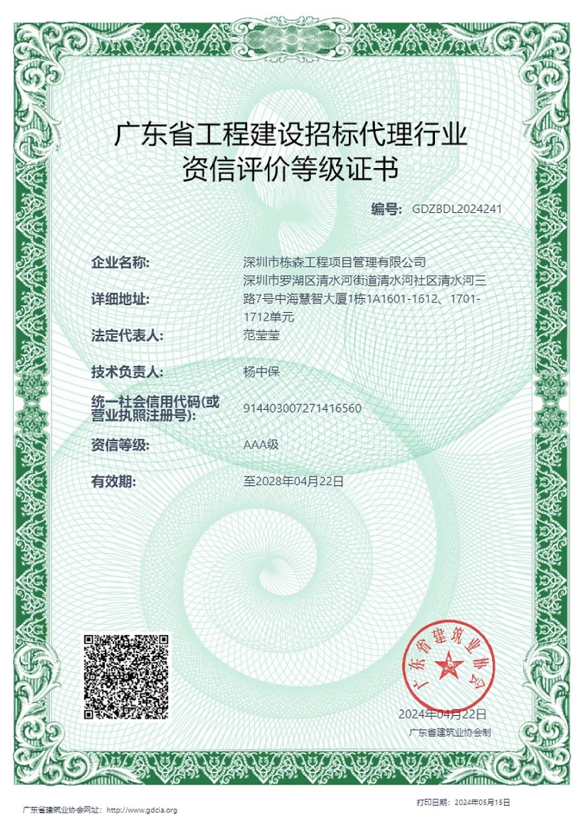 深圳市棟森工程項目管理有限公司本著"實在做事、厚道做人、感恩社會"的經營理念,力求通過誠信為基石,保持公司健康的可持續性發展。
